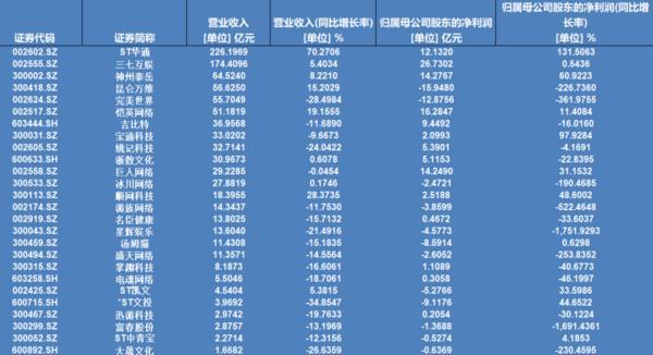 净利润方面,排名前三的是三七互娱、恺英网络(002517)和神州泰岳,依次为26.7亿元、16.3亿元以及14.3亿元。