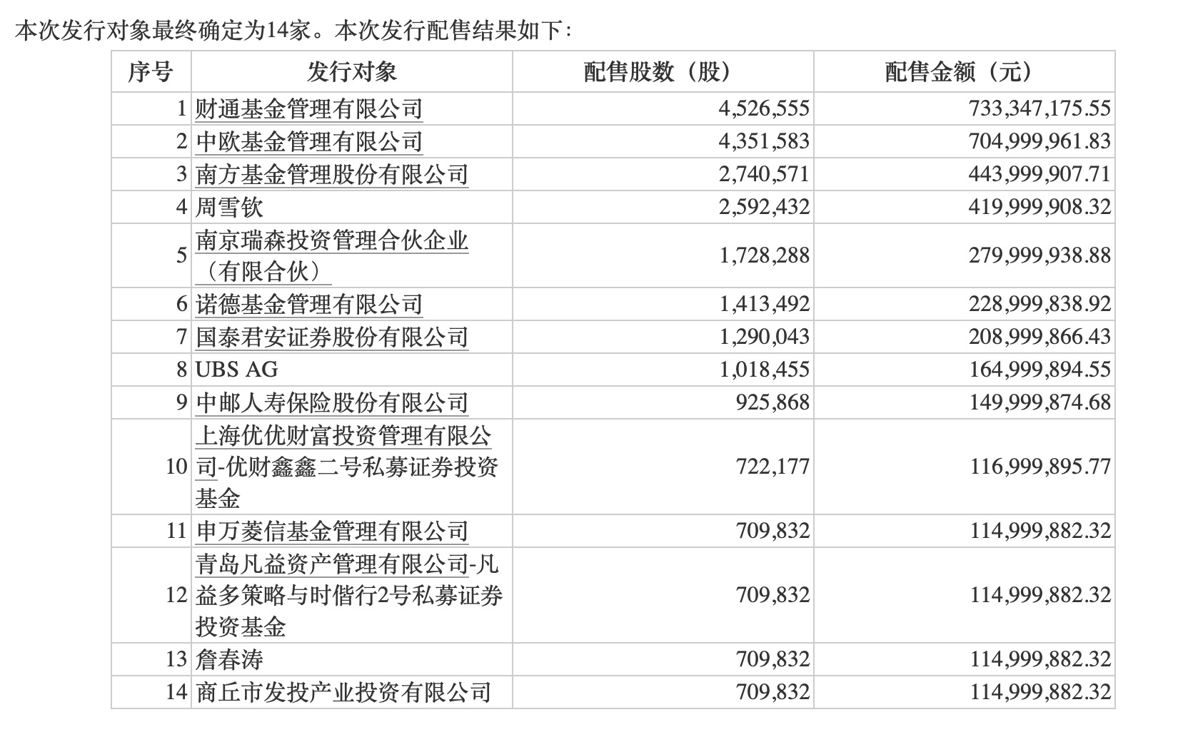 今年6月,芯源微(688037.SH)公告称,公司向特定对象发行普通股股票804.57万股,每股面值1元,发行价格为124.29元/股,有10家机构和1名自然人获配股份。“定增牛散”周雪钦位列11位,获配40.23万股股票。从发行价格及获配数量估计,周雪钦此笔定增金额高达5000万元。该定向增发机构配售股份将于12月23日上市流通,按最新股价计算,周雪钦已浮盈近2000万元。