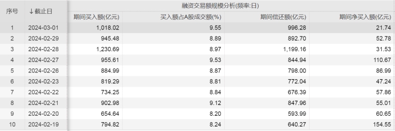 具体来看,截至3月1日,A股融资余额报14430.81亿元,2月19日-3月1日融资余额增加679.03亿元。其中,2月19日、2月27日单日增加金额均超110亿元。