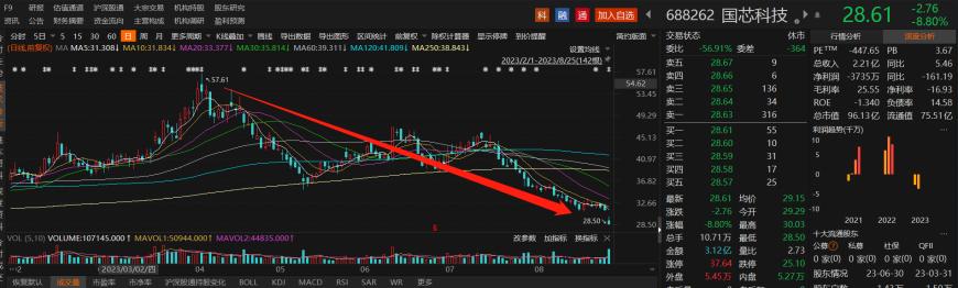 兆易创新、四维图新、中颖电子和国民技术自4月年内股价最高点迄今累计最大跌幅分别为38%、37%、44%、43%。国芯科技7月24日公告新一代汽车电子MCU内部测试成功并已给客户送样也“没能挽救颓势”,股价自4月6日年内最高点迄今累计最大跌幅51%。拉长时间看,总市值近600亿元的龙头兆易创新周五收盘报89.10元,相较2021年历史最高价232.13元跌幅高达62%。